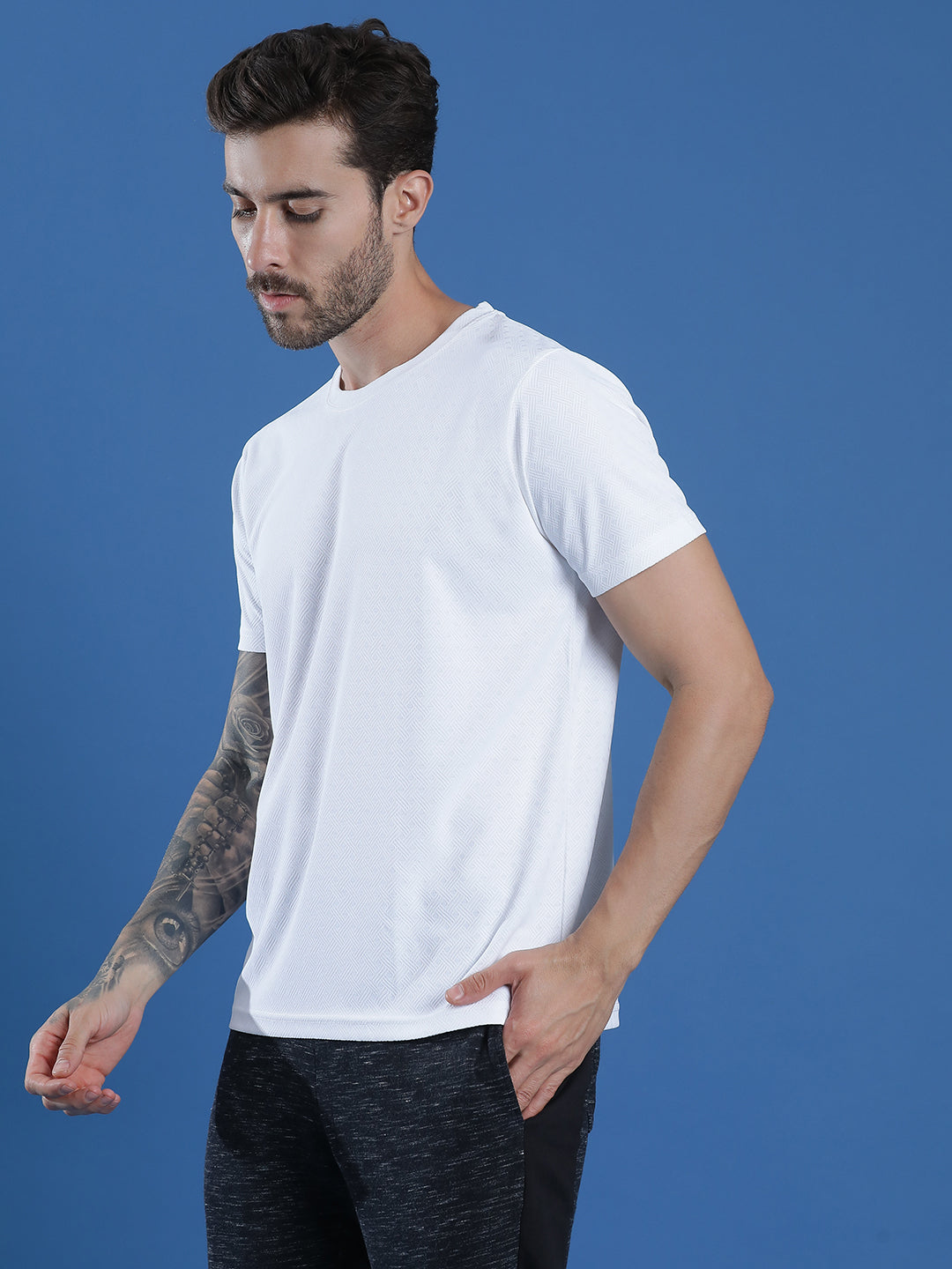 Easy Care: This textured structured white t-shirt is simple to clean with a gentle machine wash, keeping you dry and energetic all day.